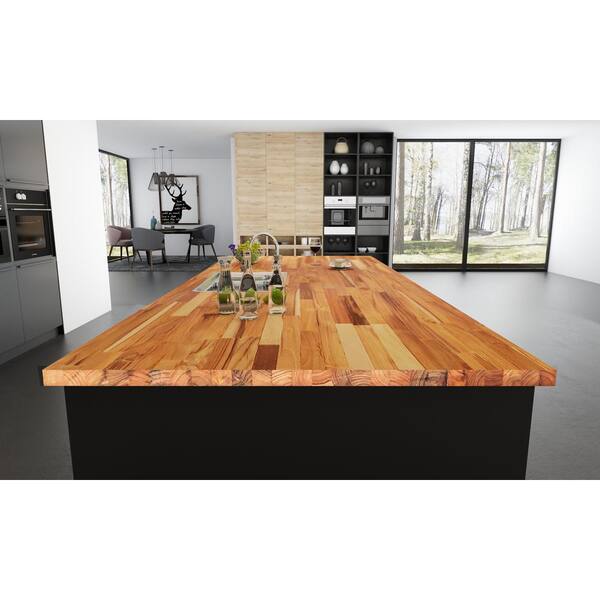 Interbuild Solid Acacia 8 Ft L X 40 In D X 1 In T Butcher Block Island Countertop Golden Teak 672520 The Home Depot